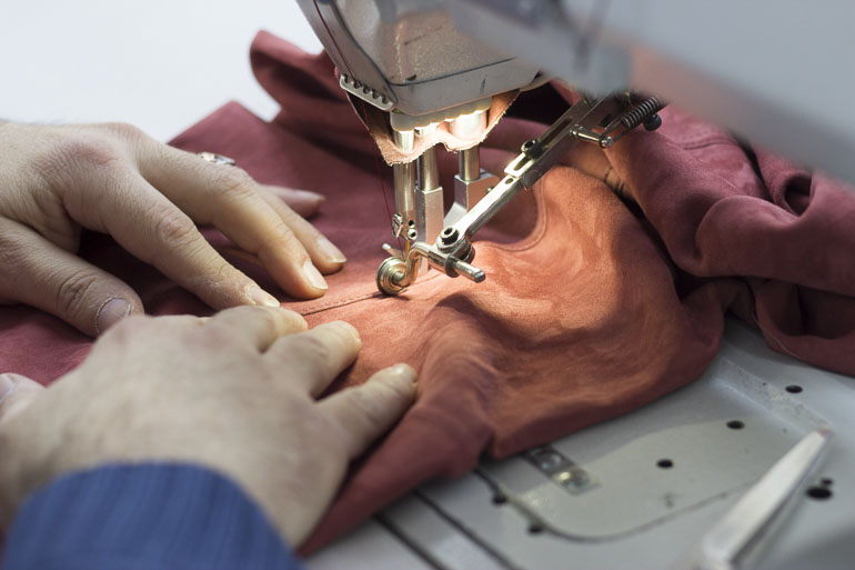 我們做皮革手工服裝,注重微小的細節(jié)。我們的裁縫親自跟蹤每個服裝部位的縫制工藝生產,因為我們相信,這是獲得完美制造的最好方法。 工廠的核心部分在車間,配備專業(yè)進口的縫紉設備,保證卓越品質的原版、樣衣、和最終成衣。手工縫制,再精加工完成裁縫階段。日復一日,我們始終保持著對技術的不懈追求態(tài)度,有激情,有效率的做好每一件完美的成衣。